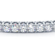 This single row prong set round brilliant cut diamond bangle bracelet is set with F color & VS1 clarity diamonds, every diamond is set beautifully and carefully in a shared prong setting, the double securing clasp allows for worry and stress free wear. This diamond bangle bracelet is made in 14k White Gold.