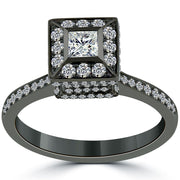 1.27 Carat E-VVS1 Princess Cut Natural Diamond Engagement Ring 18k Black Gold
