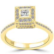 1.27 Carat G-VS1 Princess Cut Diamond Engagement Ring 18k Yellow Gold Pave Halo