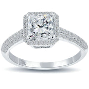 1.30 Carat G-SI3 Princess Cut Diamond Engagement Ring 18k White Gold Pave Halo
