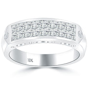 1.30 Carat Princess Cut Natural Diamond Unisex Wedding Band Ring 18k White Gold