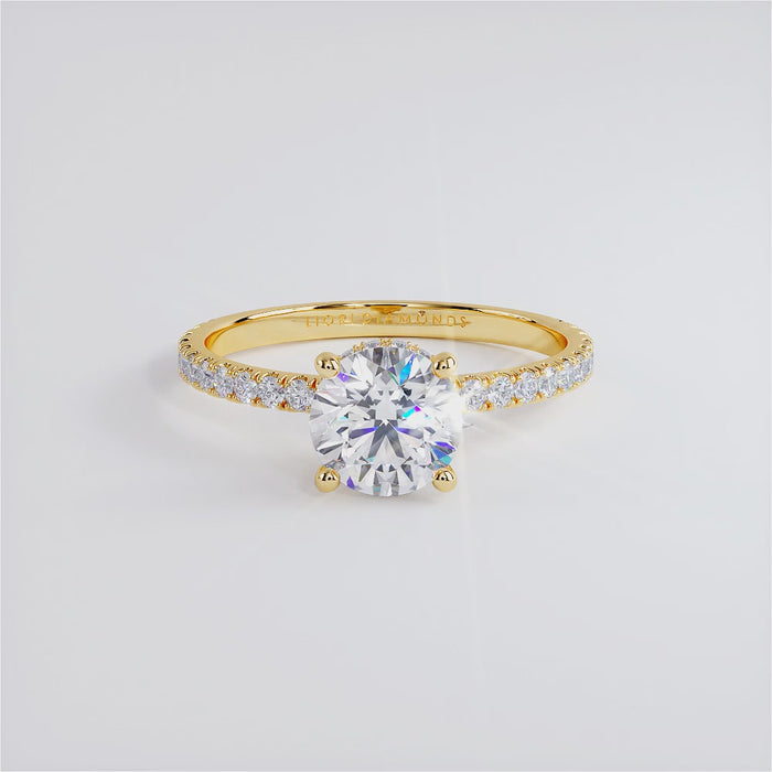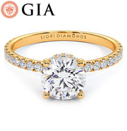 1.33ctw GIA Certified Round Brilliant Under Halo Petite Micropavé Lab Grown Diamond Engagement Ring set in 14k Yellow Gold