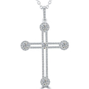 1.35ctw Art Deco Diamond Cross Pendant Necklace in 14k White Gold