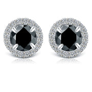 1.35 Carat Fancy Black Diamond Pave Halo Diamond Studs Earrings 18k White Gold