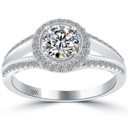 1.36 Carat G-VS2 Natural Round Diamond Engagement Ring 18k White Gold Pave Halo