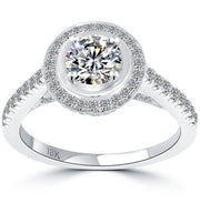 This classic diamond engagement ring is perfectly set up with a 0.81ctw white round cut diamond center stone and 0.55ctw of gorgeous round diamond side stones. This unique diamond engagement ring is complimented by small round white diamonds on the ring shank, and the rings halo making this a rather int-icing diamond ring . This very unique diamond engagement ring is casted in 18kt white gold. The main stone shows visible imperfections under magnification as it is a SI1 in clarity diamond. This is the perfect diamond engagement ring for someone who wants a simple, yet beautiful diamond engagement ring.