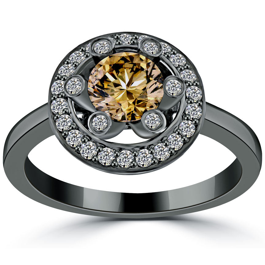 1.36 Carat Natural Fancy Cognac Brown Diamond Engagement Ring 14k Black Gold