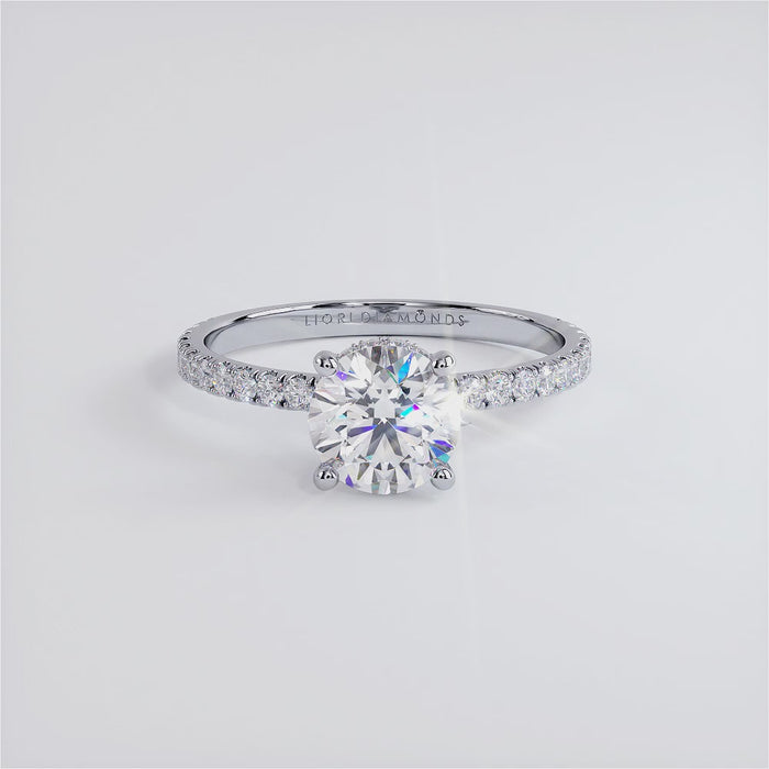 A classic diamond solitaire under halo engagement ring set with Round Brilliant Lab Grown Diamond securely held in place by four sturdy prongs.