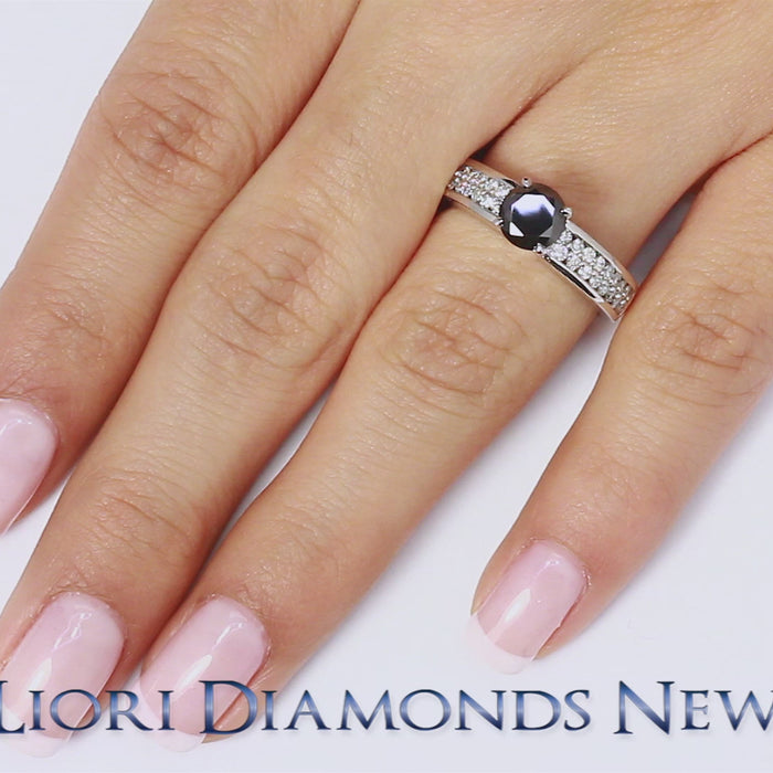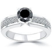 1.40 Carat Certified Natural Black Diamond Engagement Ring 14k White Gold