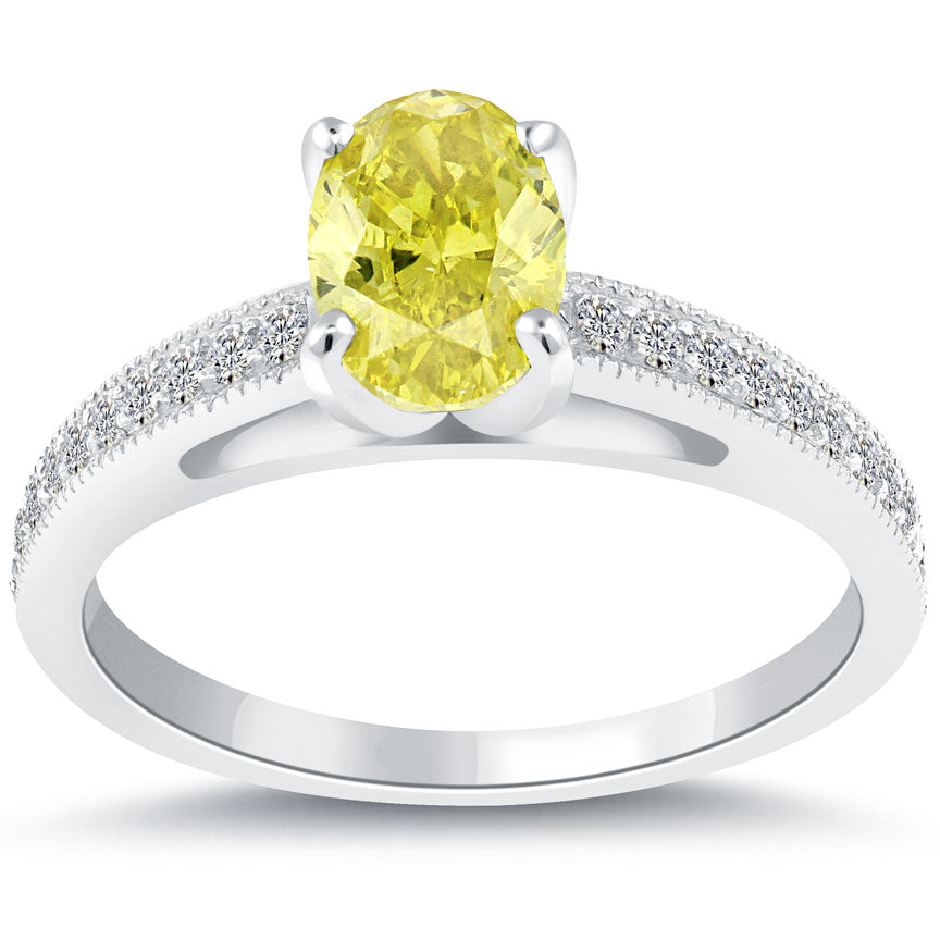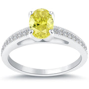 1.40 Carat Fancy Yellow Oval Cut Diamond Engagement Ring 14k White Gold