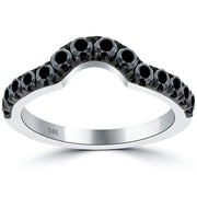 1.40 Carat Matching Black Diamond Wedding Band Ring With Curve 14k White Gold