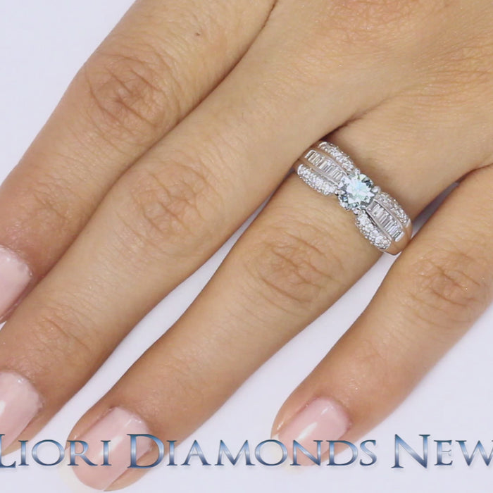 1.43 Carat Fancy Blue Diamond Engagement Ring 14k White Gold Vintage Style