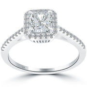 1.43 Carat G-VS1 Radiant Cut Natural Diamond Engagement Ring 18k Gold Pave Halo