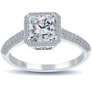 1.45 Carat F-SI1 Princess Cut Diamond Engagement Ring 18k White Gold Pave Halo