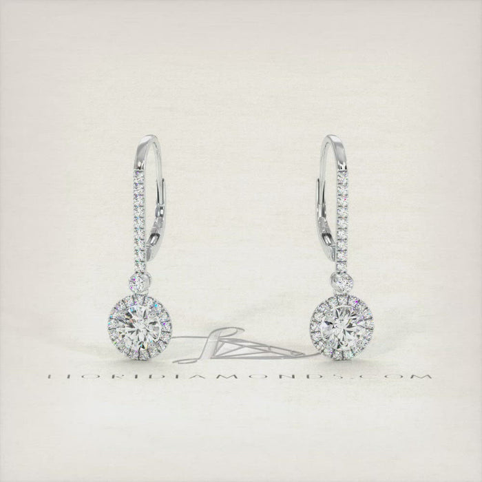 1.45 Carat Round Diamond Leverback Hanging Drop Earrings 18k White Gold