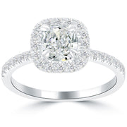 1.45 Carat G-VS2 Cushion Cut Diamond Engagement Ring 14k Pave Halo Vintage Style