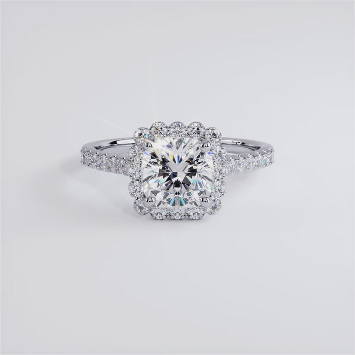 1.5 Carat Cushion Cut Beaded Prong Halo