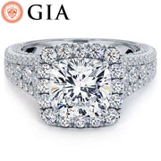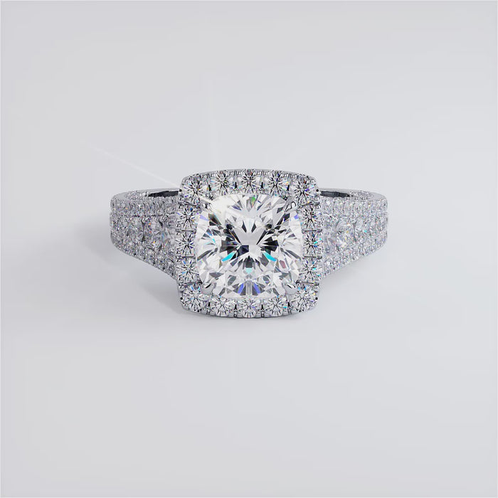 1.5 Carat Cushion Cut Vintage Style Micropavé Halo Graduated Shank