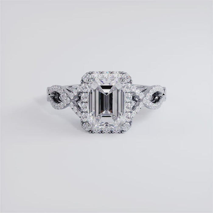 1.5 Carat Emerald Cut Micropavé Infinity Twist Halo