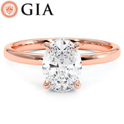 A classic petite wire diamond solitaire engagement ring set with 1.5 Carat Oval Cut Lab Grown Diamond.