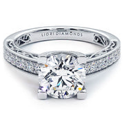 1.5 Carat Round Brilliant Filigree U Shape Prongs Vintage Style