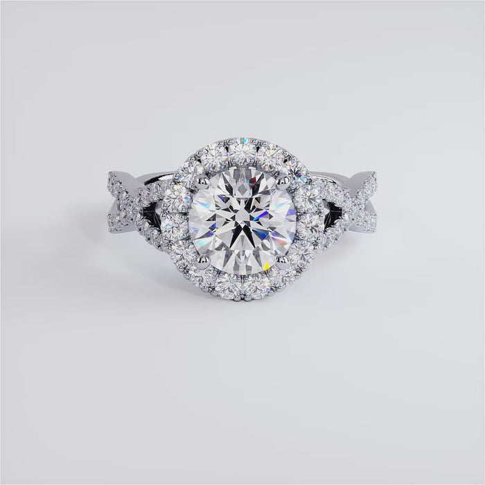 1.5 Carat Round Brilliant Infinity Twist Round Halo Micropavé