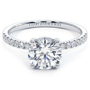 A petite French cut setting engagement ring set with 1.50ct dew Round Cut VVS & Colorless (D-E-F) Moissanite.