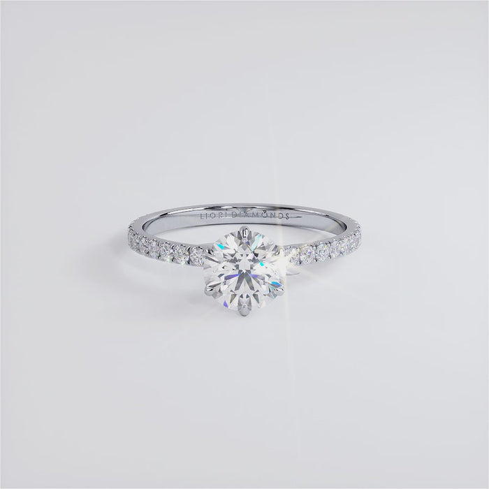 A petite micropavé 6 prong diamond engagement ring set with 1.50 Carat Round Cut Lab Grown Diamond.