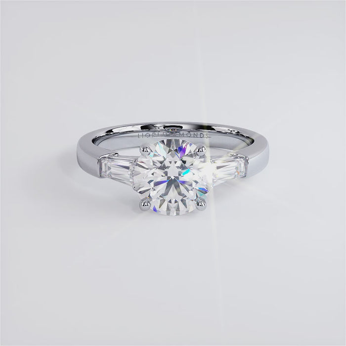 1.5 Carat Round Brilliant Tapered Baguette Three Stone