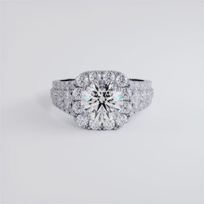 A vintage style large diamond halo engagement ring set with 1.50ct dew Round Cut VVS & Colorless (D-E-F) Moissanite.