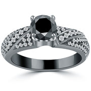 1.50 Carat Certified Natural Black Diamond Engagement Ring 14k black Gold
