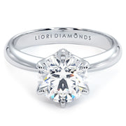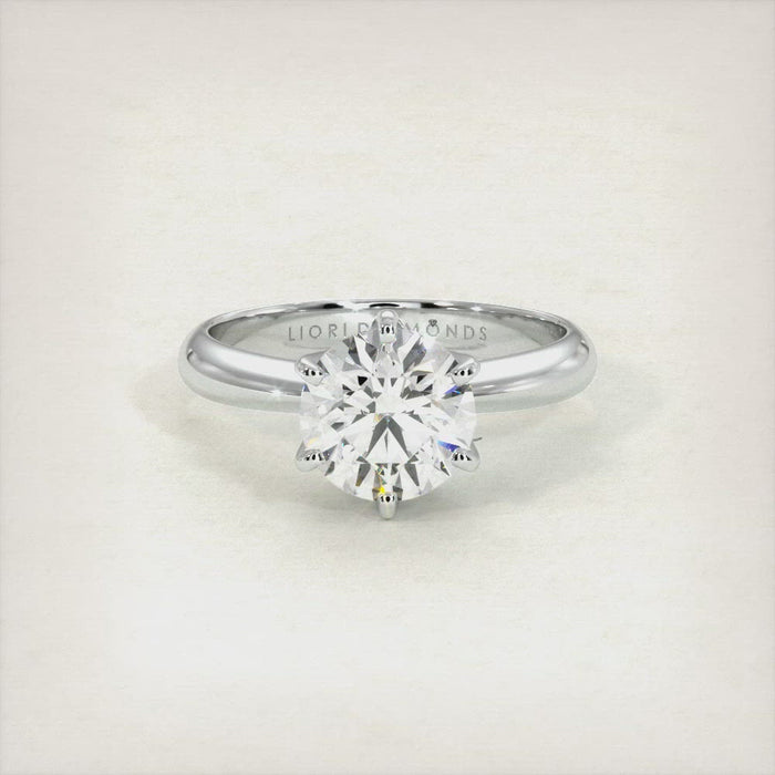 This beautiful classic solitaire engagement ring holds a 1.51 ctw round brilliant center diamond. The center diamond is set in a 6 prong setting. This diamond engagement ring is made in Platinum