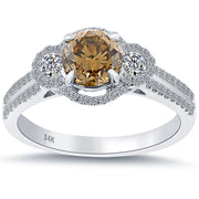 1.51 Carat Natural Fancy Cognac Brown Diamond Engagement Ring 14k White Gold