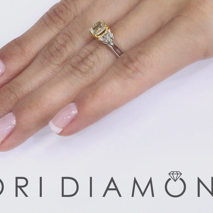 1.51 Carat Radiant Cut Fancy Yellow Three Stone Diamond Engagement Ring 14k Gold