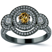 1.52 Carat Natural Fancy Cognac Brown Diamond Engagement Ring 14k Black Gold