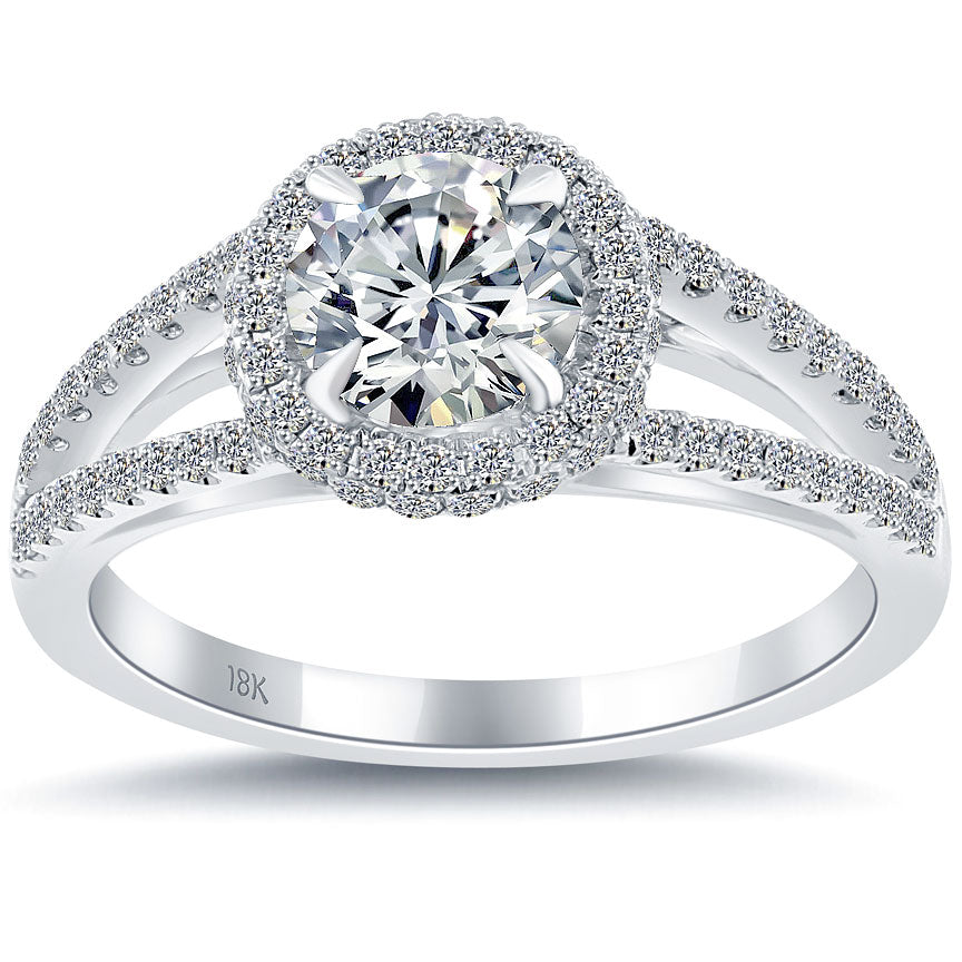 1.53 Carat D-SI1 Natural Round Diamond Engagement Ring 18k White Gold Pave Halo