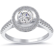 1.55 Carat D-VS2 Natural Round Diamond Engagement Ring 18k White Gold Pave Halo