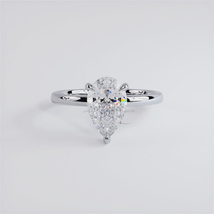 A classic petite wire basket diamond solitaire engagement ring set with a Pear Shape Lab Grown Diamond