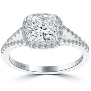 1.57 Carat G-SI1 Cushion Cut Natural Diamond Engagement Ring 14k Gold Pave Halo