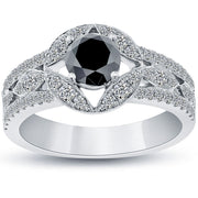 1.59 Carat Certified Natural Black Diamond Engagement Ring 14k White Gold