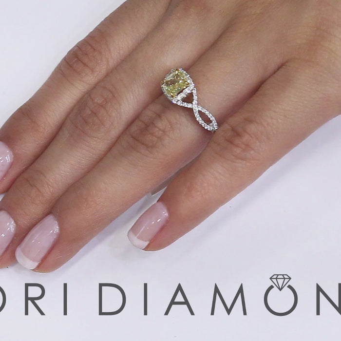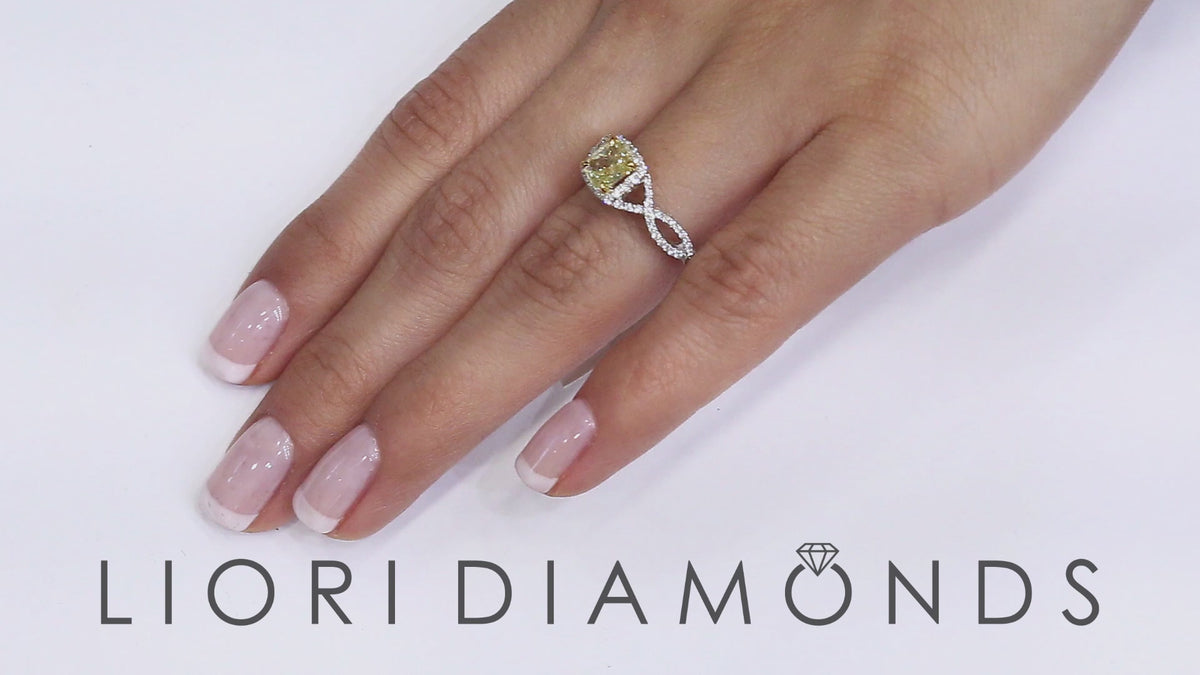 1.65 Ct. GIA Certified Natural Fancy Yellow Cushion Cut Diamond Engagement Ring
