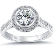 1.75 Carat H-VS2 Natural Round Diamond Engagement Ring 18k White Gold Pave Halo