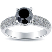 1.78 Carat Certified Natural Black Diamond Engagement Ring 14k White Gold