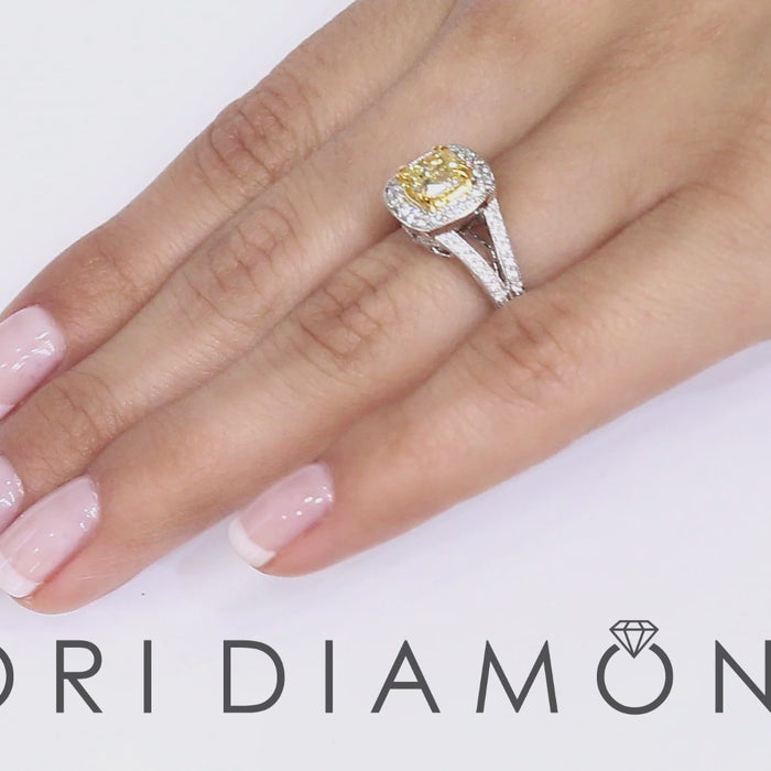 1.81 Ct. GIA Certified Natural Fancy Yellow Cushion Cut Diamond Engagement Ring