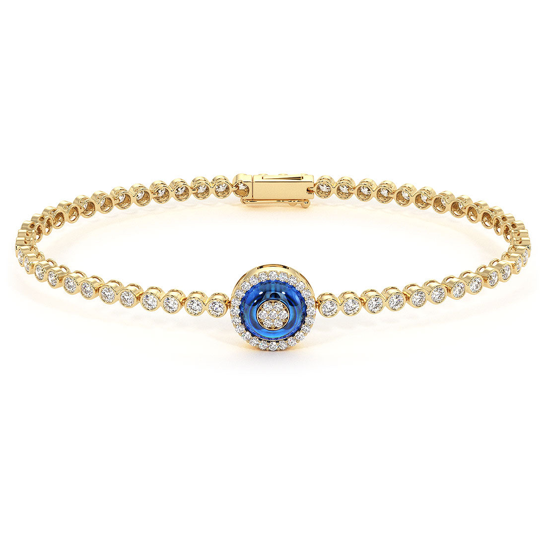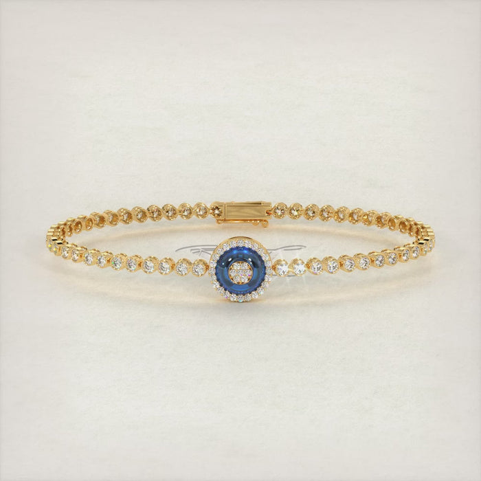 1.82 Carat Diamond and Topaz Evil Eye Bracelet 18K Yellow Gold