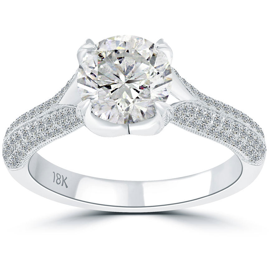 1.82 Carat E-SI2 Certified Natural Round Diamond Engagement Ring 18k White Gold
