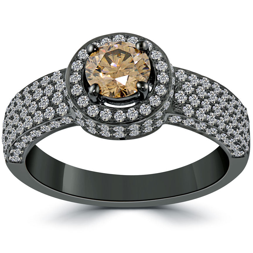 1.83 Carat Natural Fancy Cognac Brown Diamond Engagement Ring 14k Black Gold
