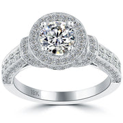 1.85 Carat E-SI1 Natural Round Diamond Engagement Ring 18k White Gold Pave Halo