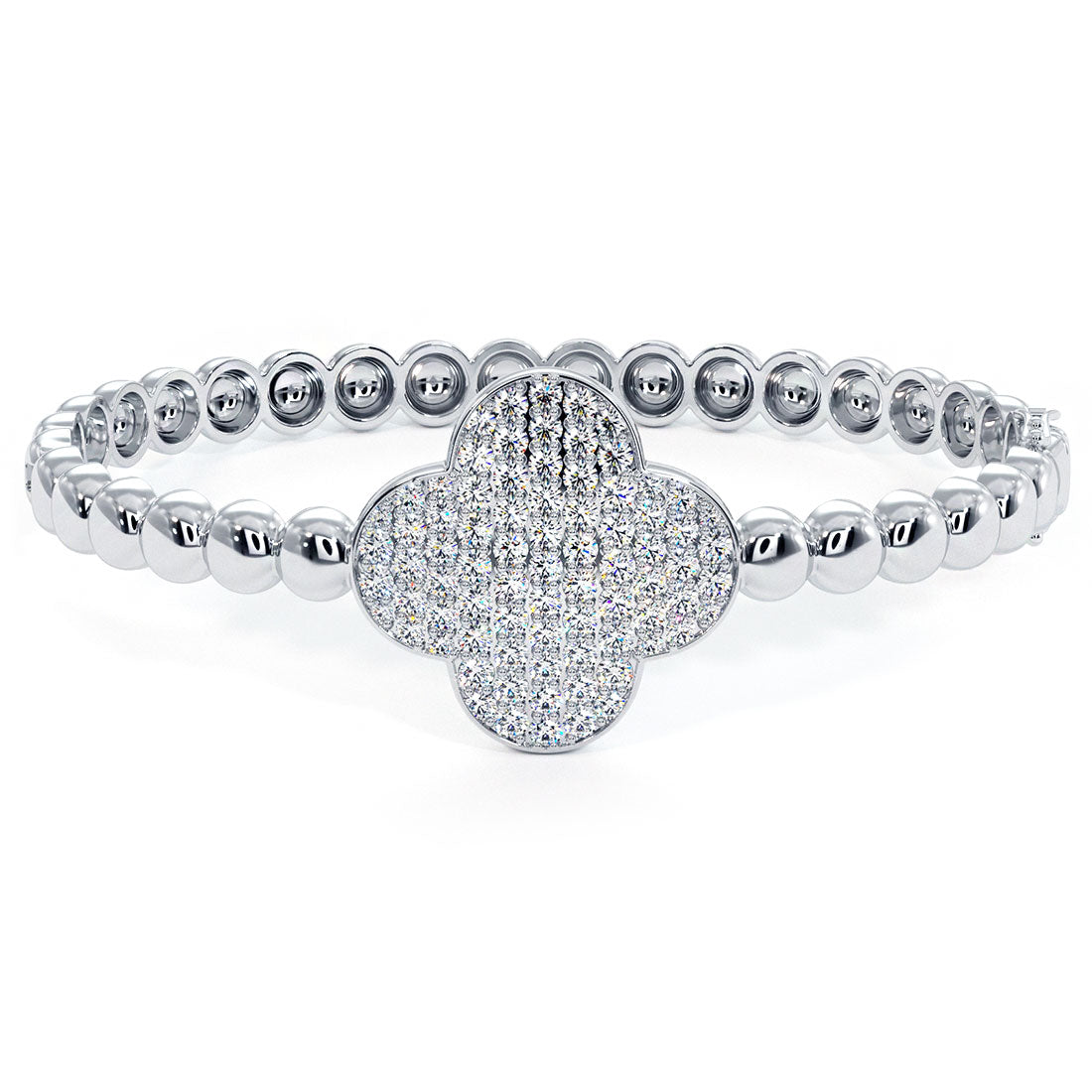 1.85 Carat Pave Diamond Beaded Bangle Cuff Bracelet 14k White Gold