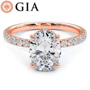 1.89ctw GIA Certified Oval Cut Under Halo Petite Micropavé Lab Grown Diamond Engagement Ring set in 18k Rose Gold